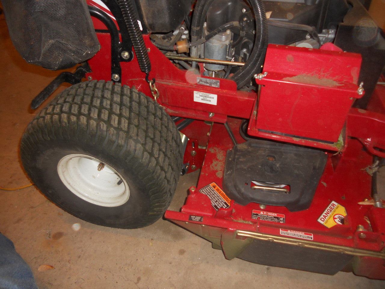 - Mounts on the mower deck and requires drilling four 3/8" holes in the deck.