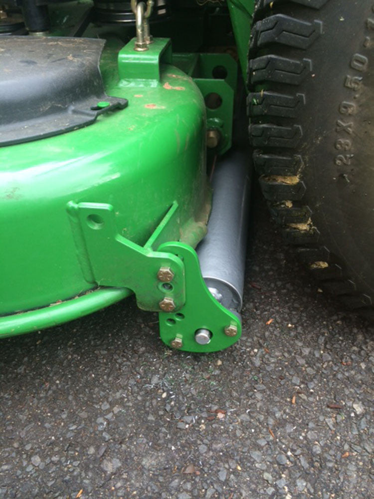 - Mounts on the mower deck anti-scalp wheel brackets.