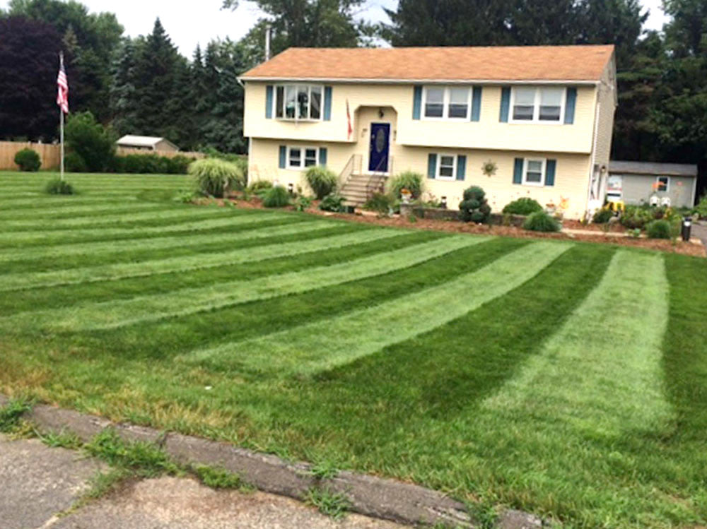 Special thanks to Paul who sent the photos shown here demonstrating the results of our striper on his rolling lawn. He is running our turf striper on his 2006 John Deere Z-Trak 727A with 54" 7 Iron mower.