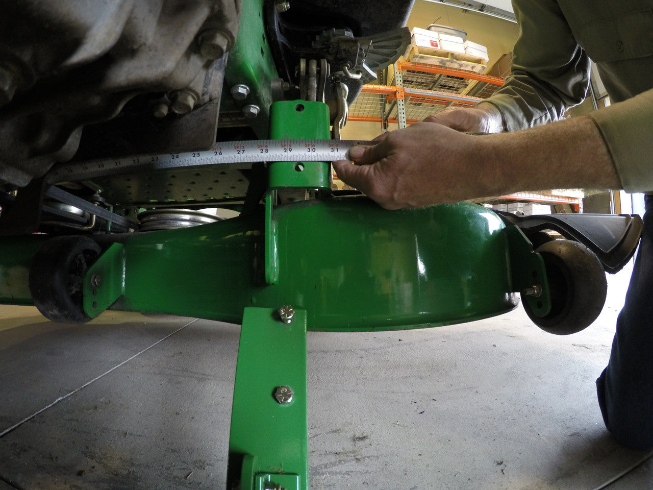 - To verify this will fit your machine measure the distance between the existing mounting holes on the mower deck.