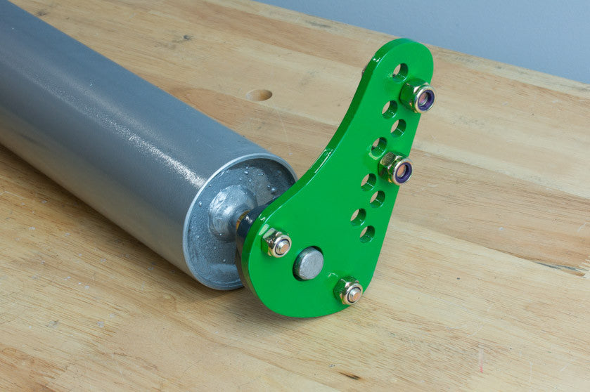 Bolts to the anti-scalp wheel brackets after the predrilled holes in the brackets are drilled out to 3/8". No other modifications to the machine are required. Watch our YouTube Video for correct installation of black eccentric locking collars.