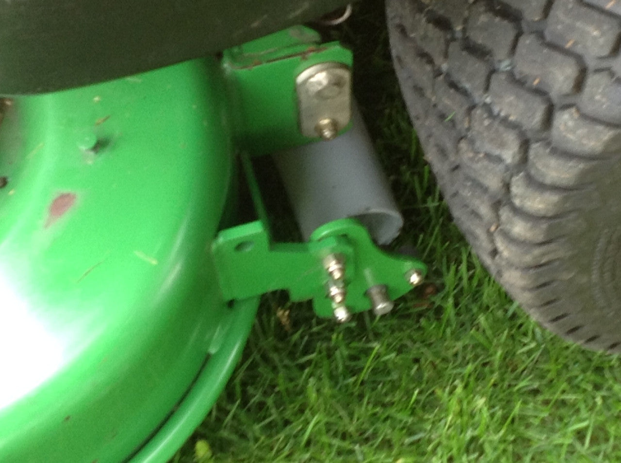 - Mounts on the mower deck anti-scalp wheel brackets.