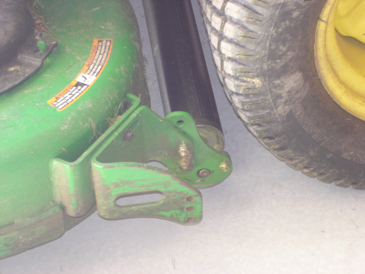 - Bolts to the anti-scalp wheel brackets after the predrilled holes in the brackets are drilled out to 3/8". No other modifications to the machine are required.
