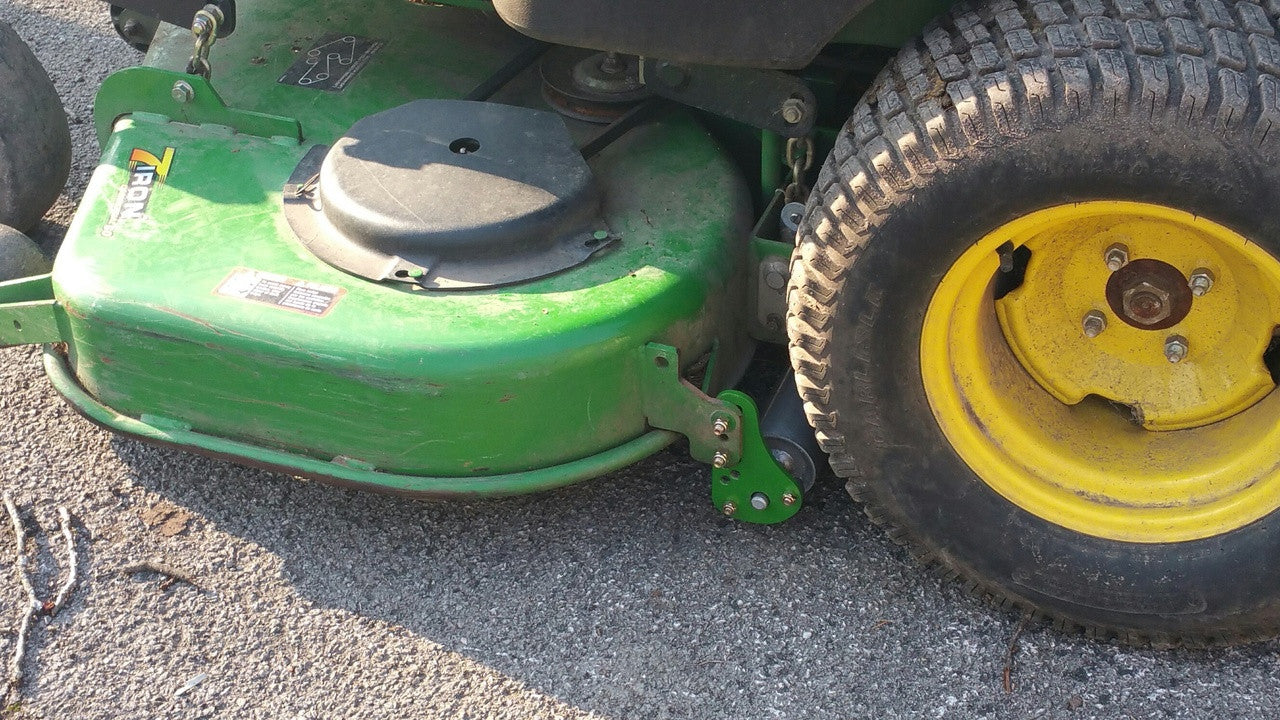 - Mounts on the mower deck anti-scalp wheel brackets.