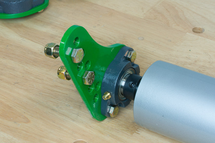 - Virtually indestructible ductile iron bearing mounting flanges. Specifically designed for use in this type of application. We are not aware of a single bearing flange that has ever failed and we have thousands in use. They cost a bit more than conventional cast iron flanges but are more than worth the price.